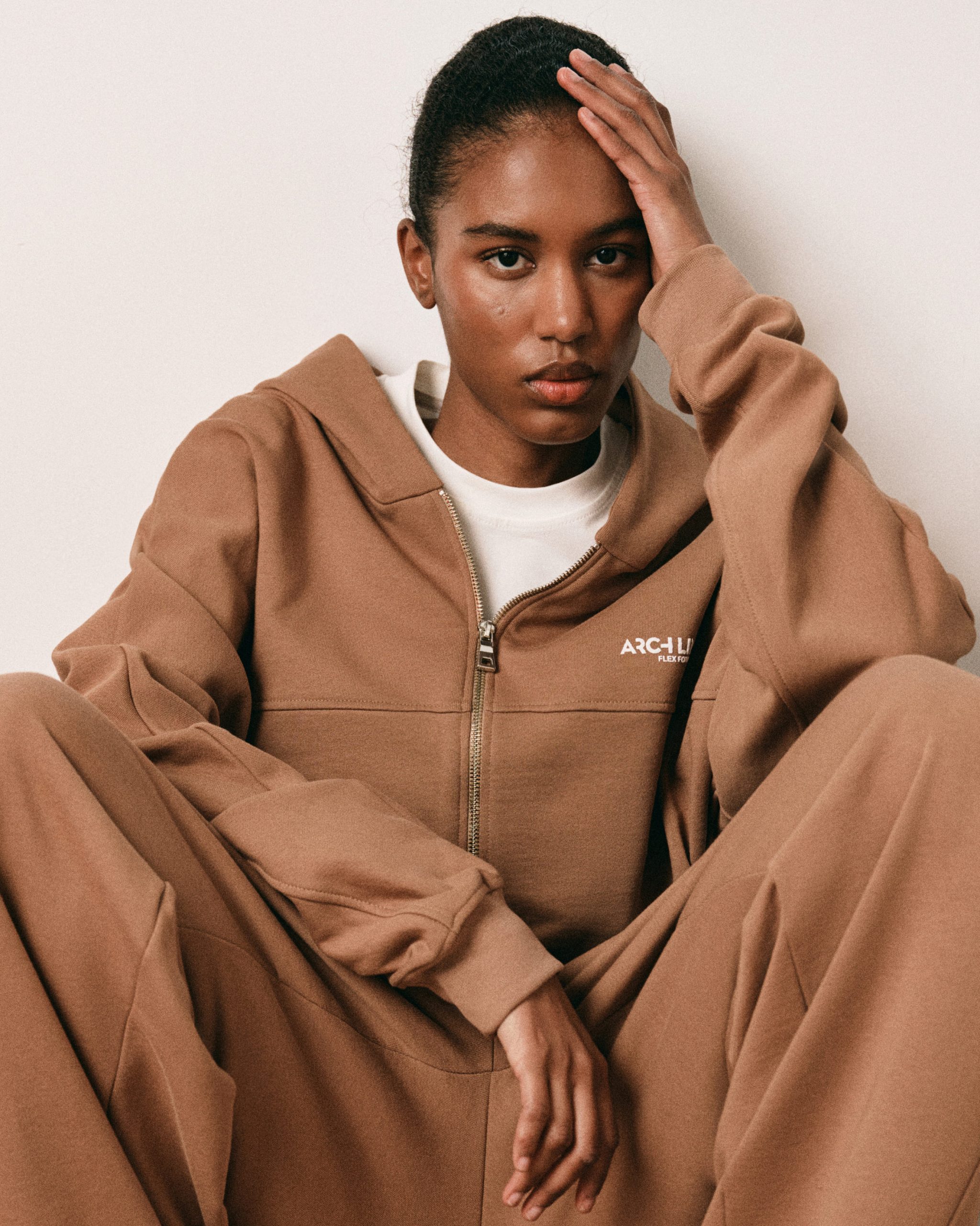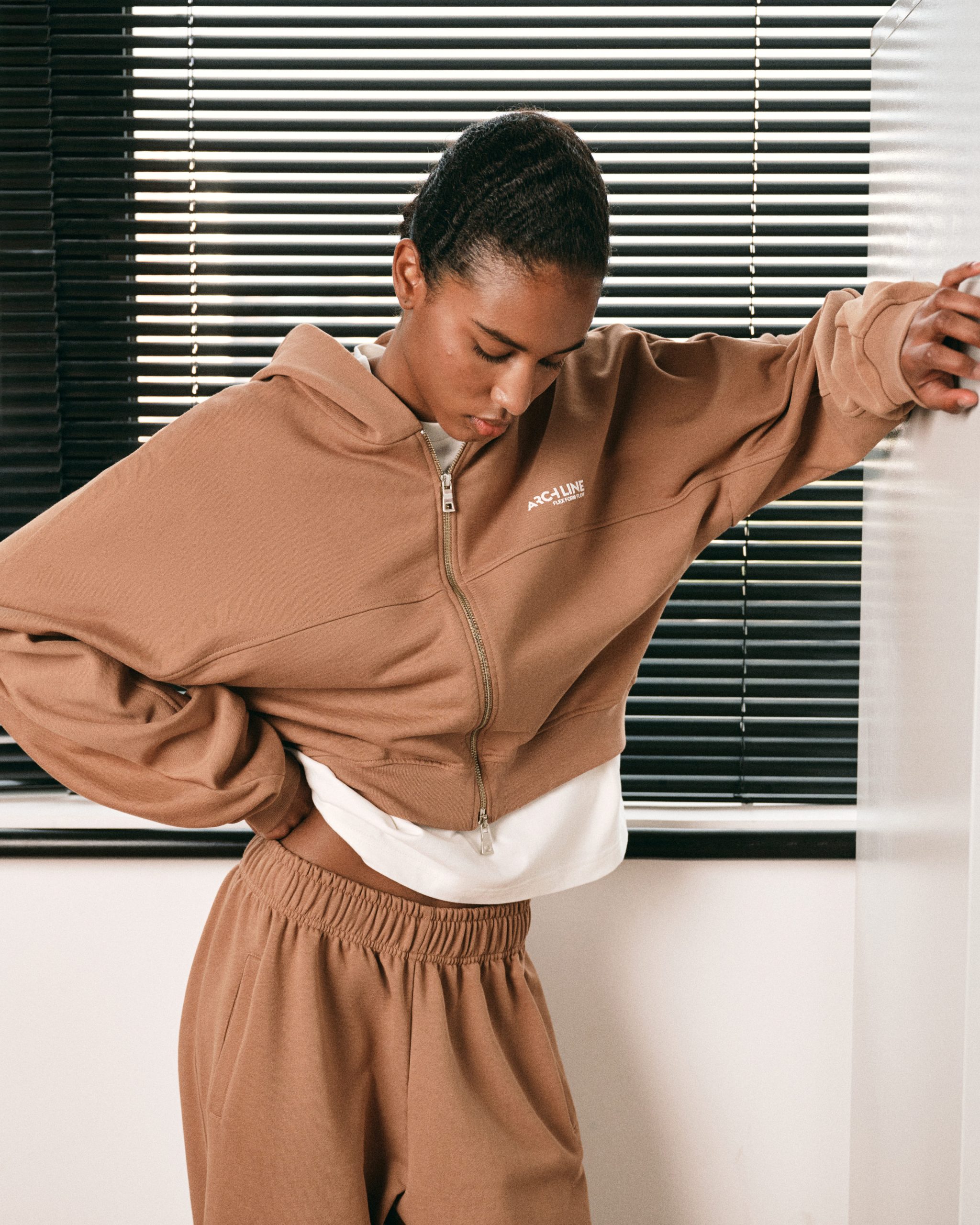 CAMEL ZIPPED HOODIE